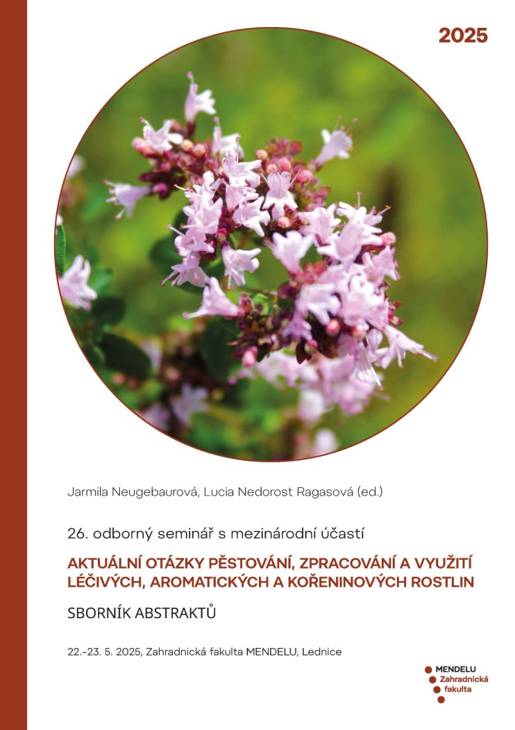26. odborný seminář s mezinárodní účastí Aktuální otázky pěstování, zpracování a využití léčivých, aromatických a kořeninových rostlin Sborník abstraktů 22.–23. 5. 2025, Zahradnická fakulta MENDELU, Lednice