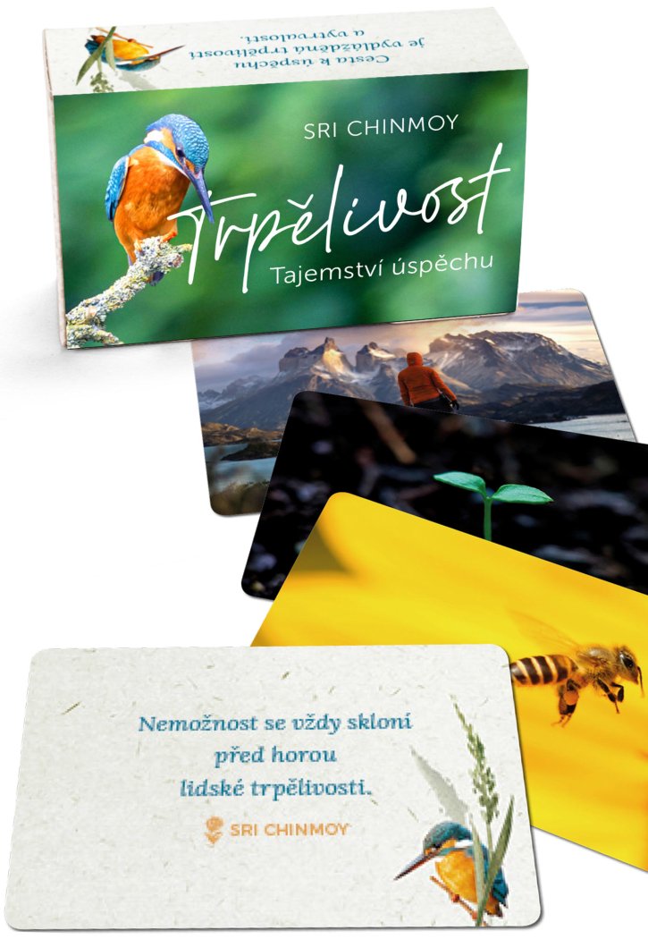 „Trpělivost prodlužuje čas,“ říká Sri Chinmoy, autor této sady 55 aforismů. Obzvlášť na dnešní uspěchanou dobu může být trpělivost výborným lékem, který nám vydláždí cestu k úspěchu – a zároveň vnese do našeho života více klidu a radosti.