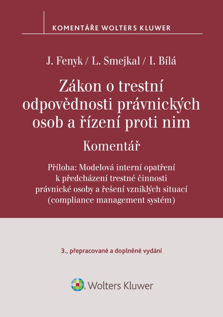 Součástí publikace je opět příloha - Modelová interní opatření k předcházení trestné činnosti právnické osoby. I tuto přílohu autoři doplnili, a to o příklady řešení vzniklých situací, tzv. compliance management systém.