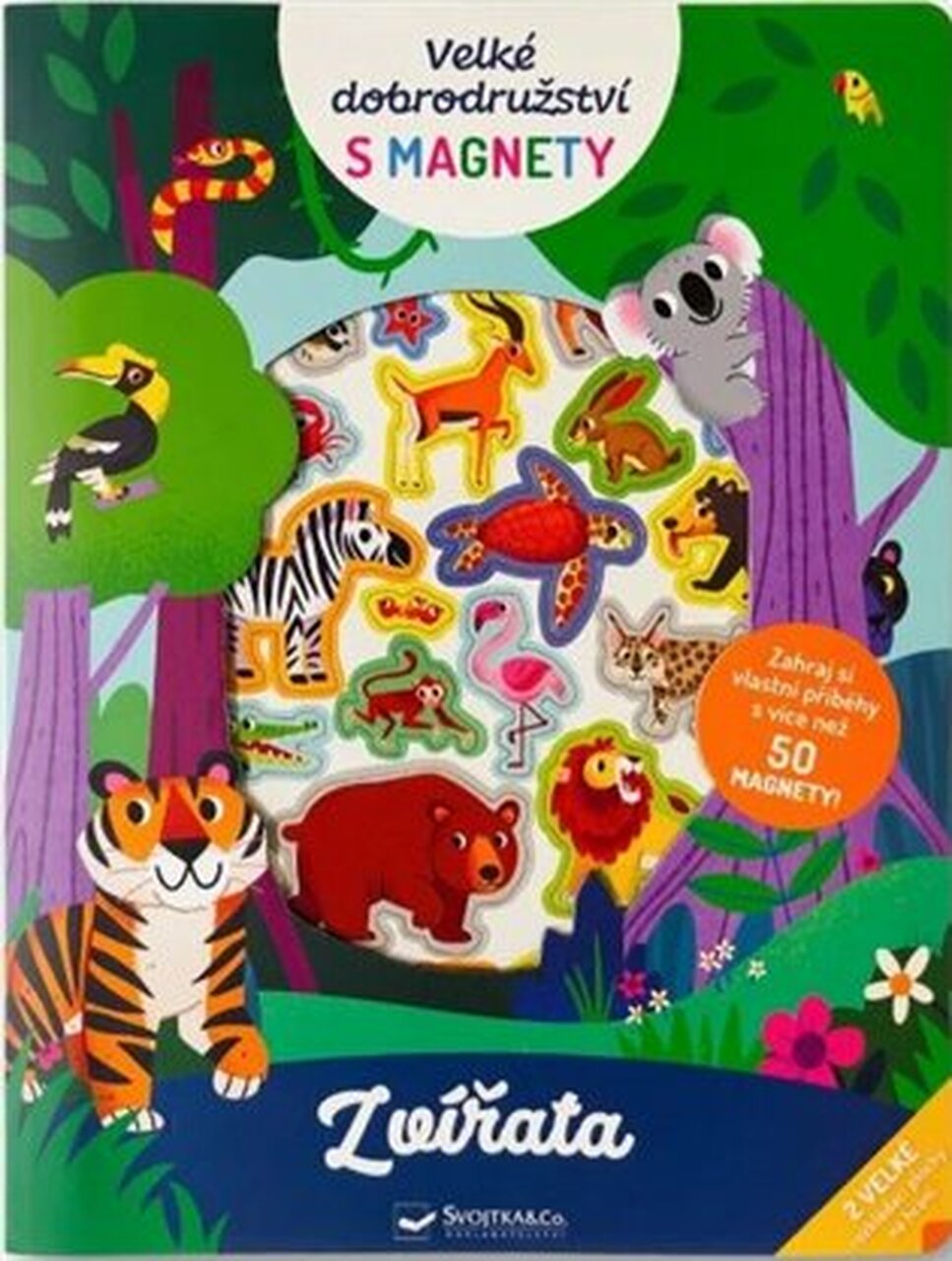 Zahraj si v této rozkládací knize vlastní příběhy se zvířaty - nyní ve větším formátu! Po roztažení měří kniha 300 x 920 mm a nabízí dvě velké scény k doplnění více než 50 barevnými magnety. Děti se dozvědí zajímavé informace o zvířatech v jejich přirozeném prostředí a zároveň si při hře s magnety rozvíjejí představivost, jemnou motoriku i slovní zásobu.